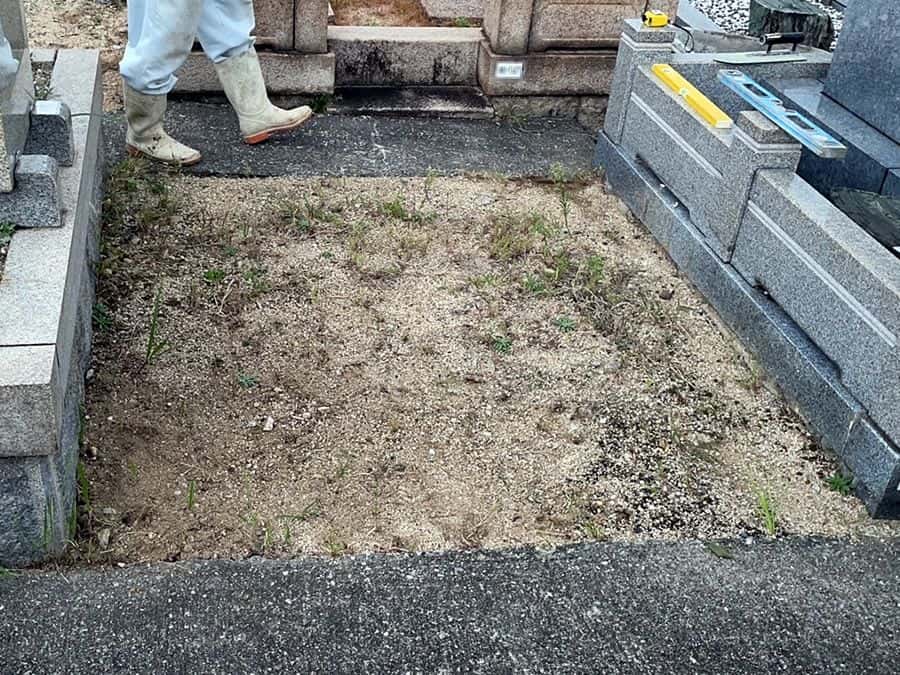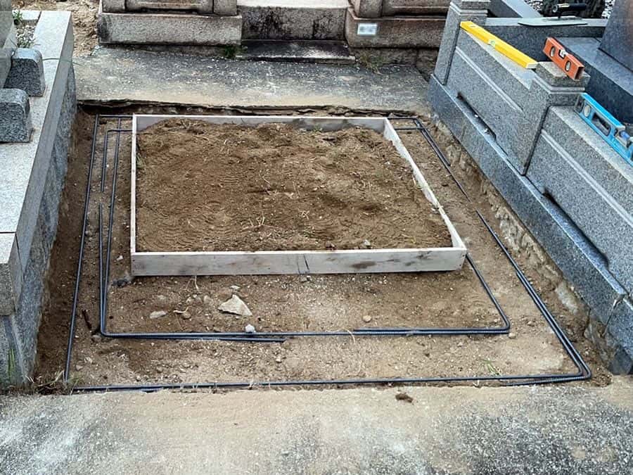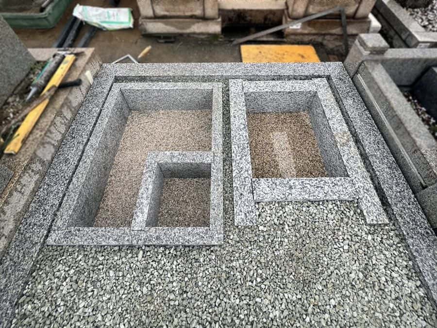 外柵を据えて納骨室を2つ作成しました。左が新規建立のお墓用、右が移設用です。