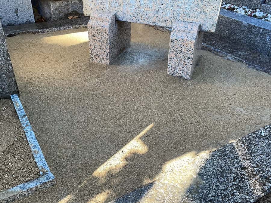 雑草対策には、「石貼り」「コンクリート+砂利」「コンクリート+レジンストーン」「防草シート+砂利」「雑草対策の固まる土(ジオミックス)」等々、いろいろな方法があります。墓地の状況やご予算、ご希望に合わせてご提案させていただきますので、お困りごとがございましたらいつでもお気軽にお問い合わせください。