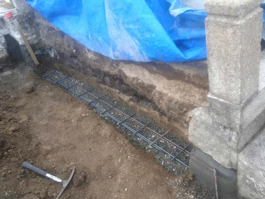 石の重量に耐えられるよう、鉄筋を入れて地盤を強化します。