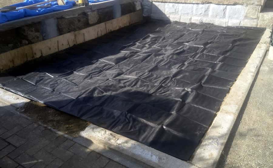 地面をならした後、シートを被せて養生中です。この後石貼りをします。