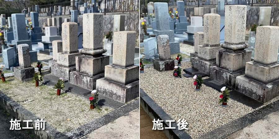 既存のお客様の親戚の方のお墓で、ご紹介をいただき、この度雑草対策の工事をさせていただくことになりました。