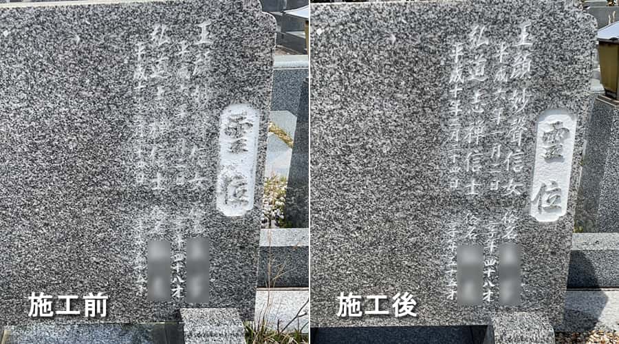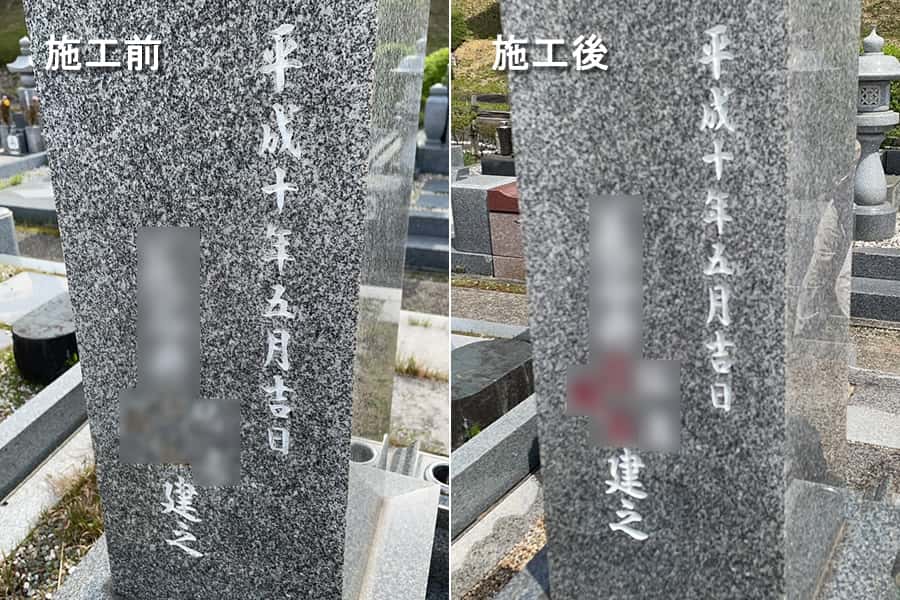 竿石、霊標の彫刻文字も色を入れ直しています。遠くからでも文字が読みやすくなりました。