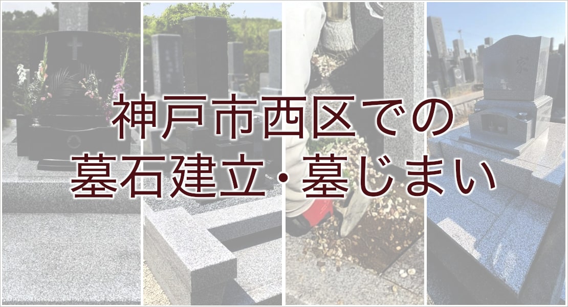 こちらのページでは、神戸市西区での実際の施工のようすをご紹介しております。当社は、西神墓園でも多数の実績がございます。こちらのページでは、神戸市西区での実際の施工のようすをご紹介しておりますので、墓石の建立・修理・墓じまいの参考にしていただければ幸いです。