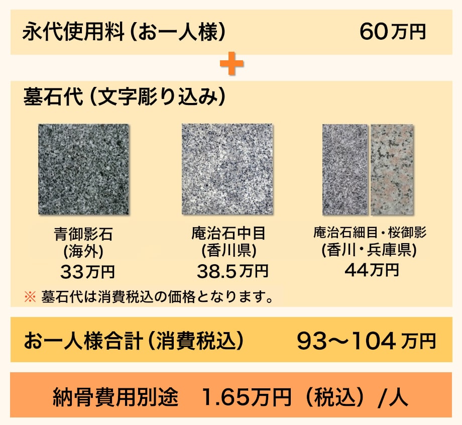 ※ ご家族様の追加納骨埋葬の場合は116,500円(永代使用料10万円+納骨費用1.65万円)となります。